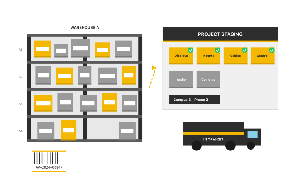 AV deployments require precise staging and logistics. Q360 tracks inventory across warehouses, staging areas, and trucks — so you always know where your equipment is and what’s allocated to which project.