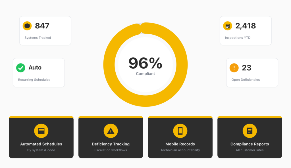 Life safety businesses operate under strict regulatory and compliance requirements. Inspections must be completed on time, documentation must be accurate, and customers depend on your records.
